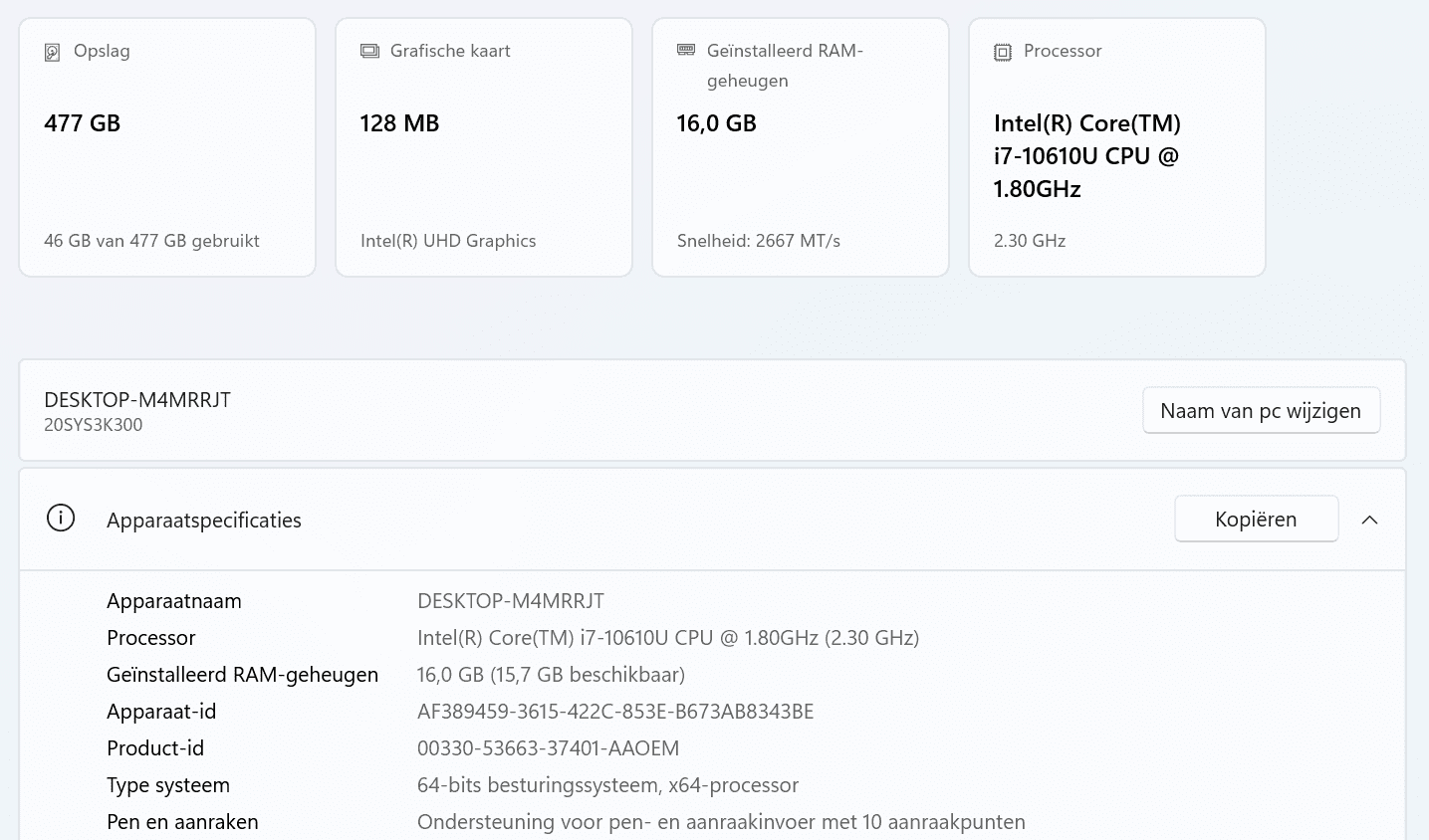 Deze laptop is uitgerust met een Intel Core i7-10610U processor, waardoor multitasking en zwaardere toepassingen moeiteloos verlopen.